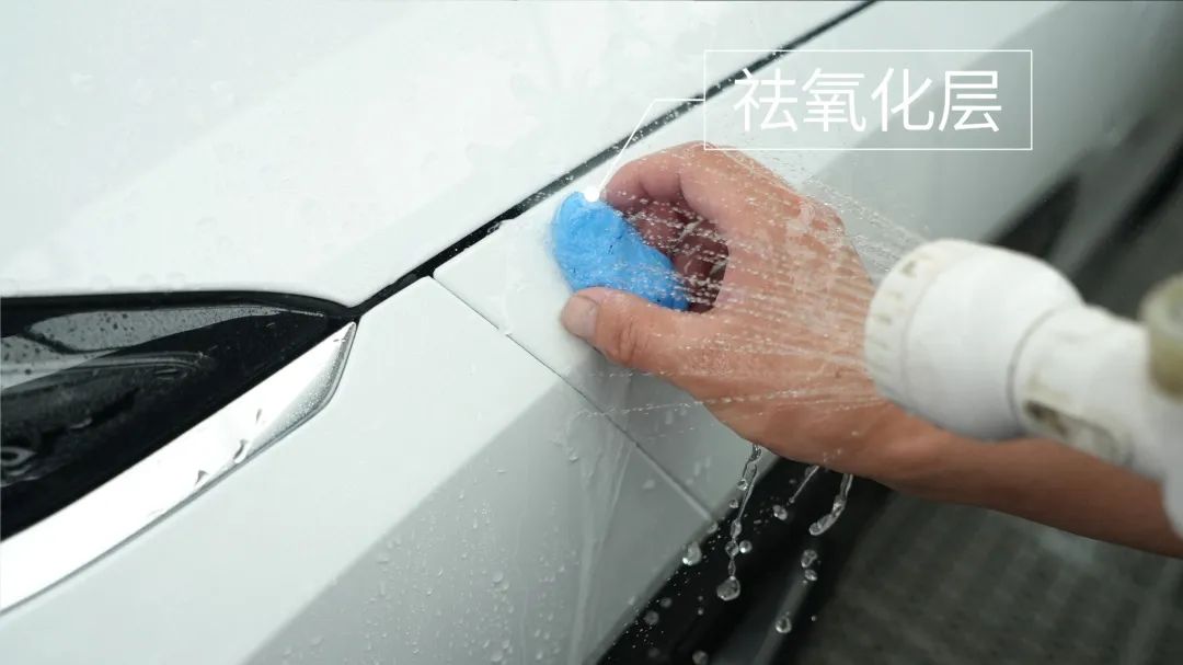 细腻的工前清洁是重中之重。不仅要把表面的污渍清除干净,还要用软毛刷清洁缝隙,并把肉眼难以识别的水渍及角质等,用洗车泥进一步清洁